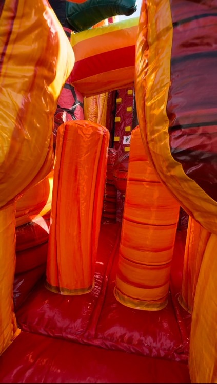 Introducing the thrilling and adrenaline-pumping 40ft Inferno Obstacle Slide! This towering slide is designed to ignite excitement and create unforgettable memories for participants of all ages. With its vibrant colors and eye-catching design, it will be the centerpiece of any event or party.